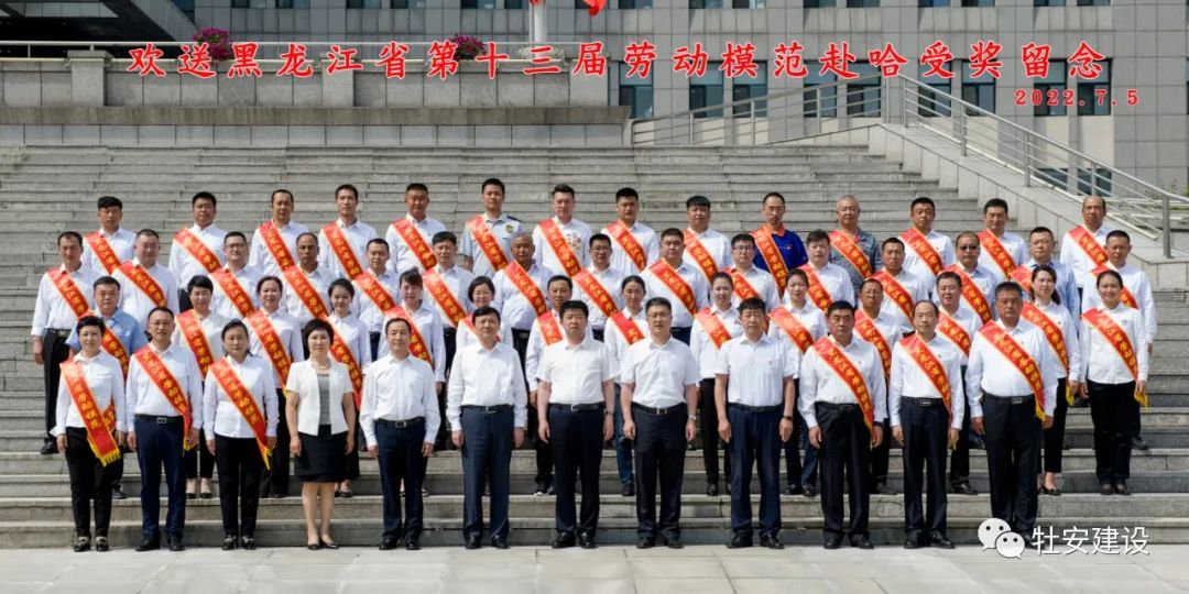 7月5日下午,榮獲省勞模的同志在市政府辦公樓前與市委市政府領(lǐng)導(dǎo)合影留念后,赴哈爾濱參加表彰大會(huì),牡安建設(shè)集團(tuán)勞務(wù)公司李大山同志榮省勞動(dòng)模范"光榮稱號(hào)。